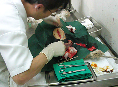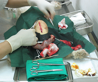 第一刀剖開肚皮和看到內臟流血照以及割下子宮的照片太血腥,就不po上*