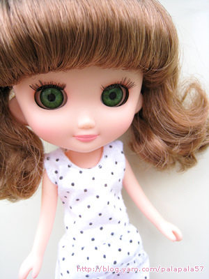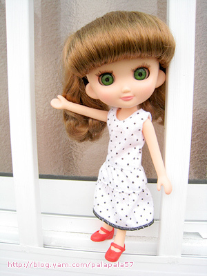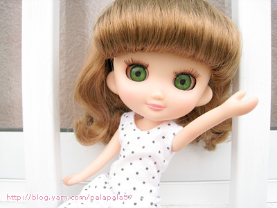 這一件點點洋裝是媽媽做給雨天odeco小女孩的娃衣,感覺很夏天很涼爽.