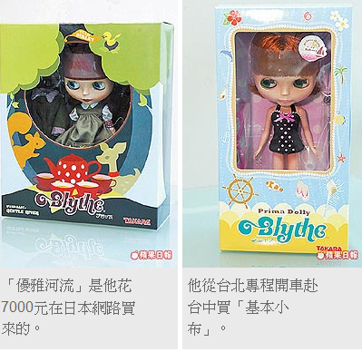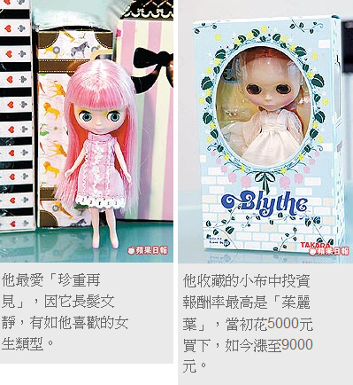 瘋狂迷上Blythe娃娃(又稱小布),至今收藏約50個,總花費約10萬元。