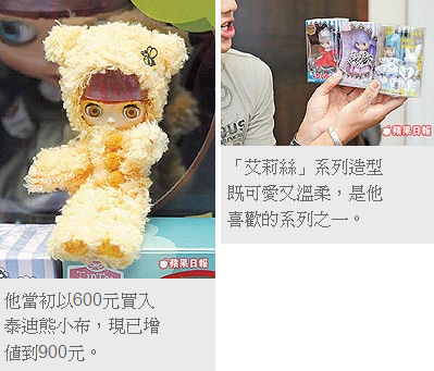 他收藏迷你布大多是上網購買,第1次出手就花3萬元狂買,